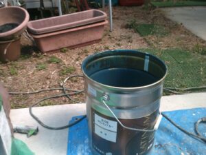 資材を保護し、上に塗る塗料の密着を良くするため、下塗り剤を塗ります。