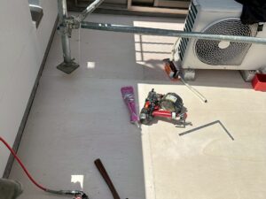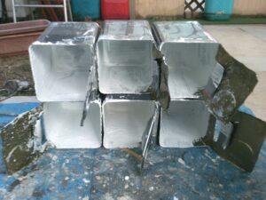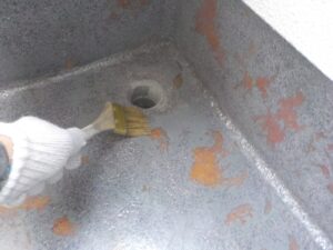 鉄鋼がさびると資材の腐食が促進するため、錆止め剤を塗ります。