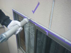 気密性や防水性を高めるため、建物の継ぎ目やひび割れなどの隙間を充填します。