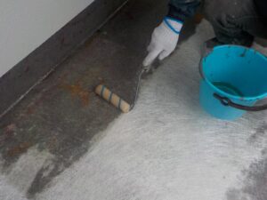 資材を保護し、上に塗る材料の密着を良くするために塗ります。