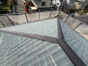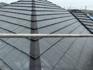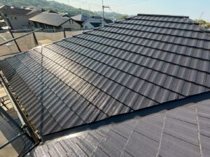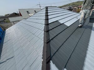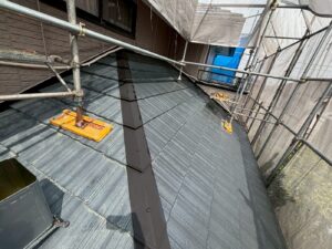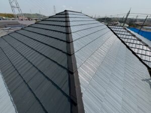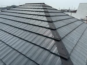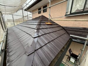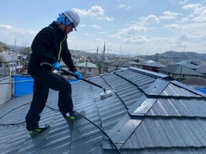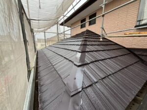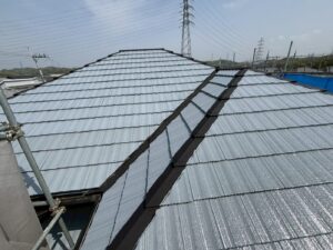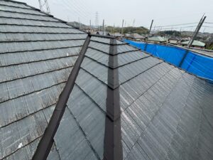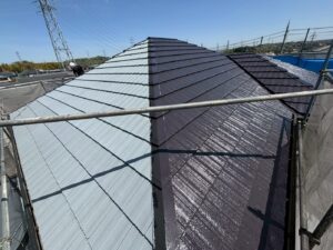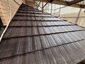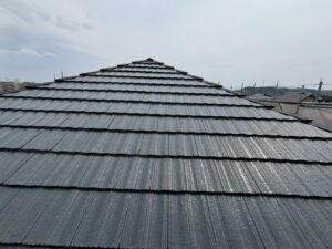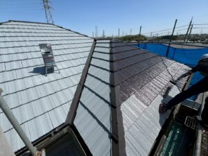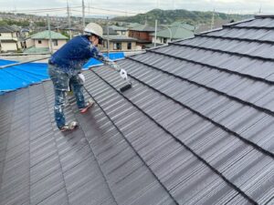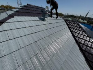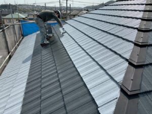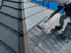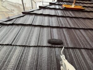 屋根材を自然環境から守るため、上塗り剤を塗り保護します。