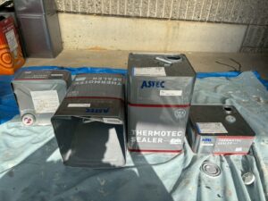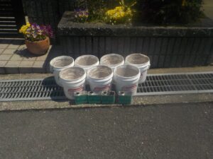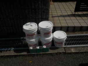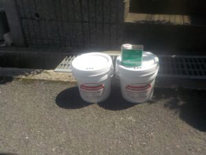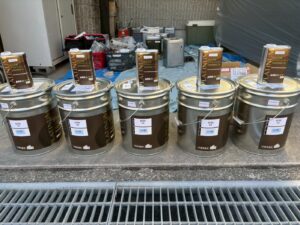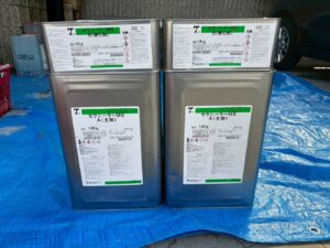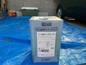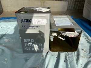 資材を保護し、上に塗る塗料の密着を良くするため、下塗り剤を塗ります。