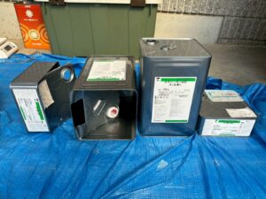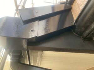 >鉄鋼がさびると資材の腐食が促進するため、錆止め剤を塗ります。