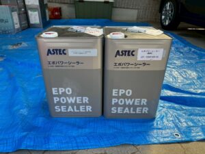 (右)資材を保護し、上に塗る材料の密着を良くするために塗ります。
