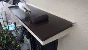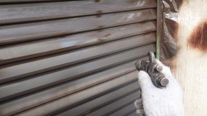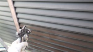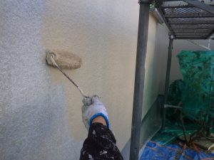 塗膜のひび割れや、壁のひび割れなどを目埋めするために中塗り剤を塗ります。