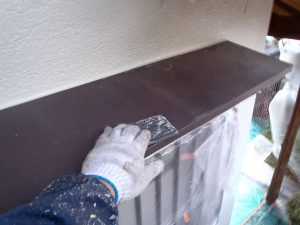 塗膜のひび割れや、壁のひび割れなどを目埋めするために中塗り剤を塗ります。