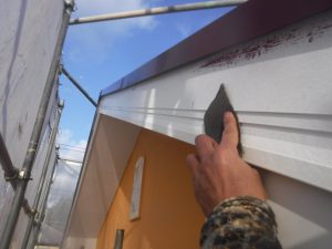 上に塗る塗料の密着を良くするため、旧塗膜・汚れを落とし細かな傷を付けます。