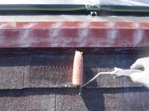 屋根材を保護し、上に塗る塗料の密着を良くするため、下塗り剤を塗ります。