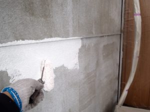 下地の強化・中性化・上塗材の密着不良・造膜不良等を防止するため、下地調整塗材を塗ります。