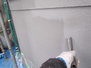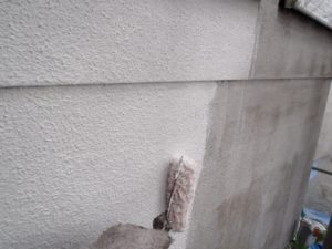 塗膜のひび割れや、壁のひび割れなどを目埋めするために中塗り剤を塗ります。