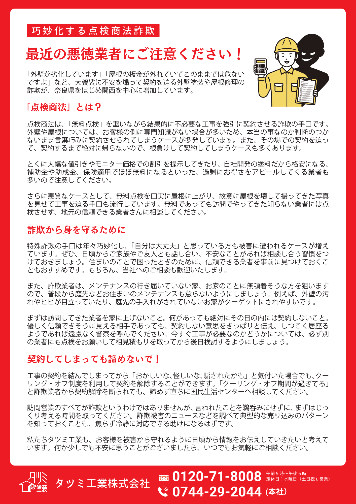 外壁塗装・屋根塗装・防水工事・雨漏り修理を奈良・大阪でお考えなら塗装職人直営店のタツミ工業にお任せください。