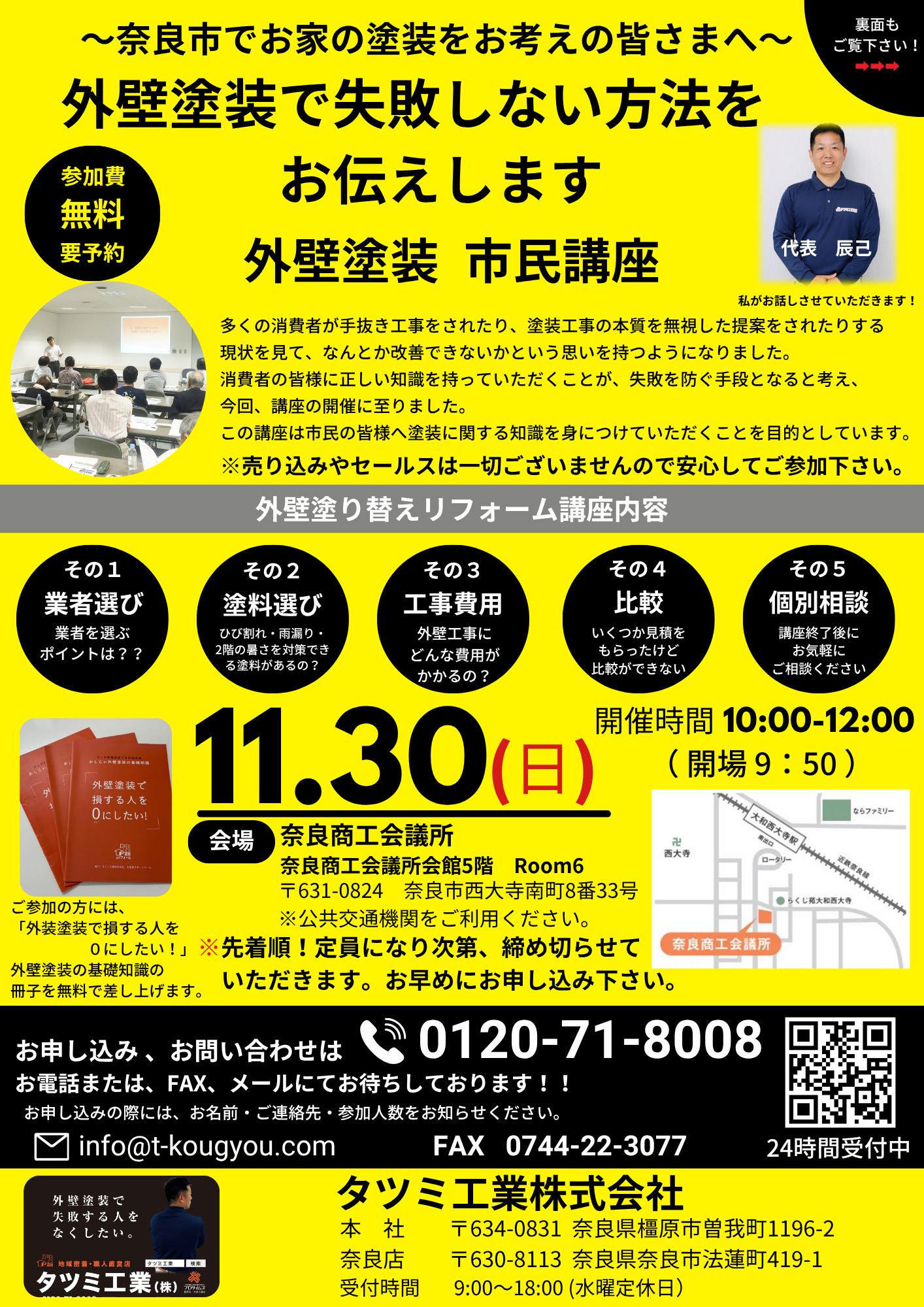 詳細はこちら※「勉強会」はタツミ工業が独自に開催している講座です。自治体が主催するものではありません